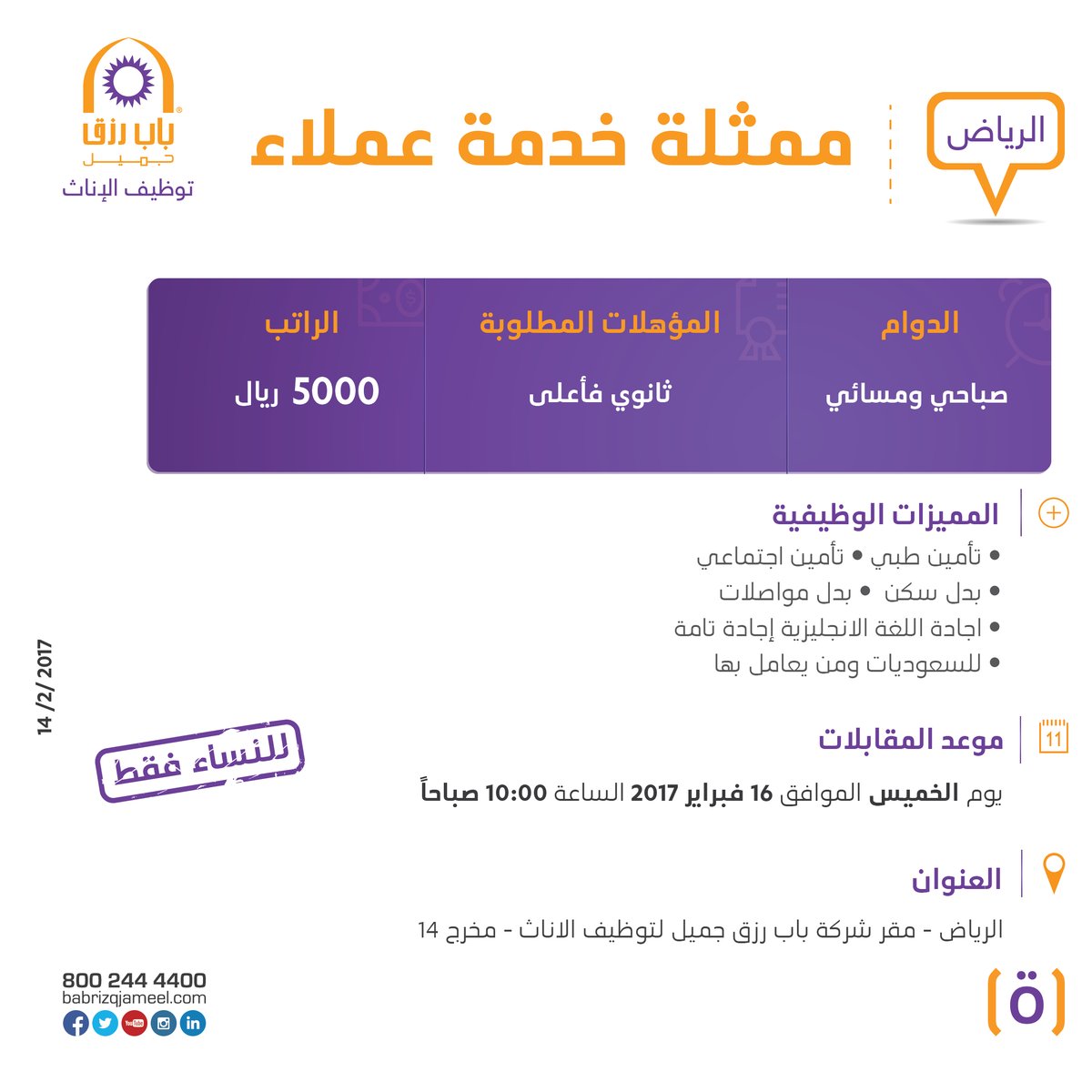 وظائف نسائيه ممثلات خدمه عملاء رواتب 5000 ريال في الرياض